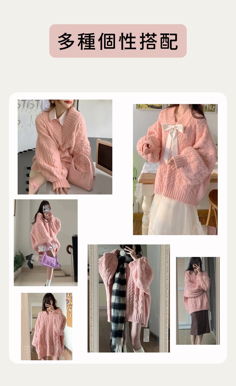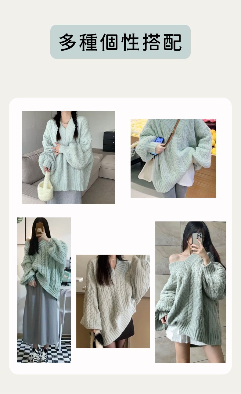 5分鐘前冬季爆款//台灣發貨+熱賣針織上衣 韓版法式V領麻花毛衣//加厚寬鬆慵懶風軟糯針織衫秋冬上衣 寬鬆上衣 毛毛外套 - 一件體驗裝NT$899