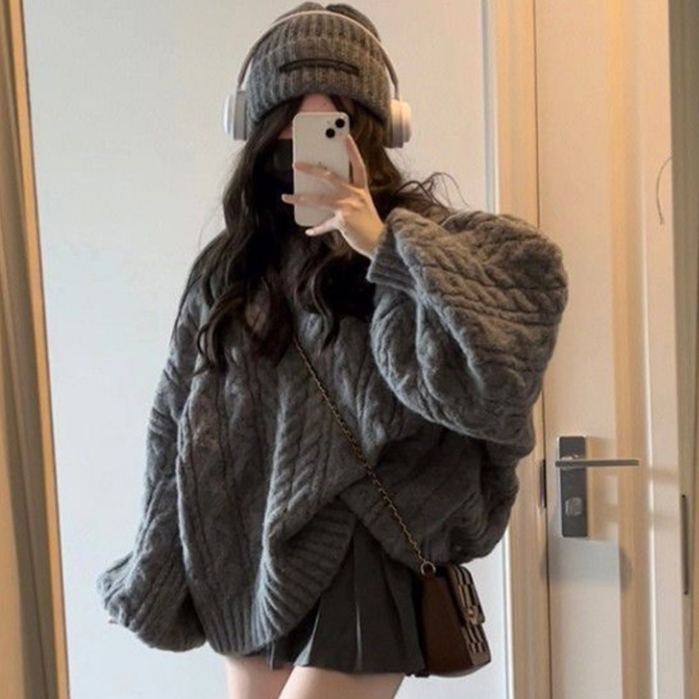 半小時前冬季爆款//台灣發貨+熱賣針織上衣 韓版法式V領麻花毛衣//加厚寬鬆慵懶風軟糯針織衫秋冬上衣 寬鬆上衣 毛毛外套 - 一件體驗裝NT$899