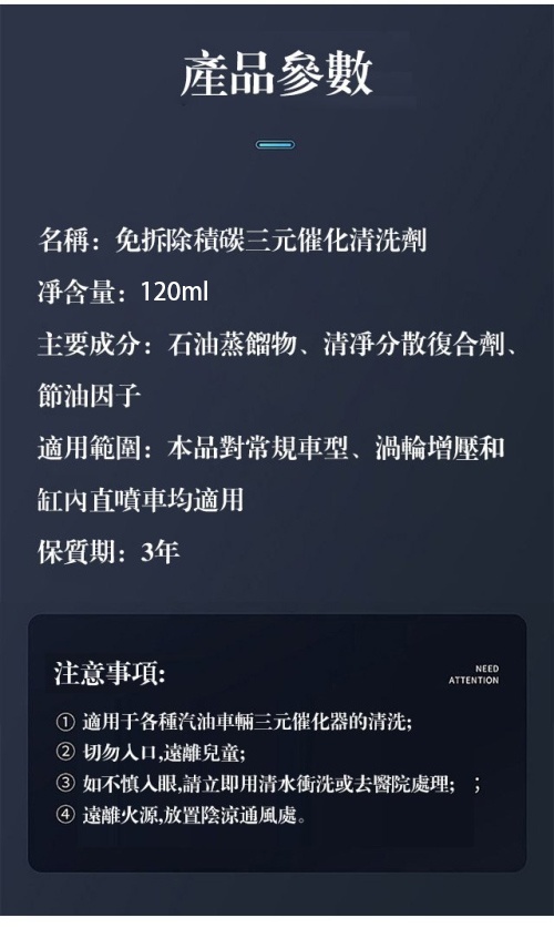 2分鐘前免拆除積碳 【黃金三元催化清洗劑】淨化尾氣、減故障燈、清除積碳、降低油耗、動力更加強勁,輕鬆通過年檢 - 保養新車套組!【新鮮體驗價】三元催化清洗劑3瓶 NT$990