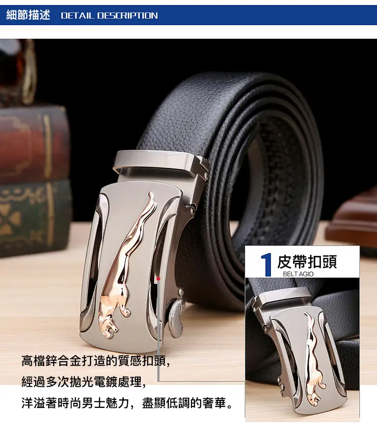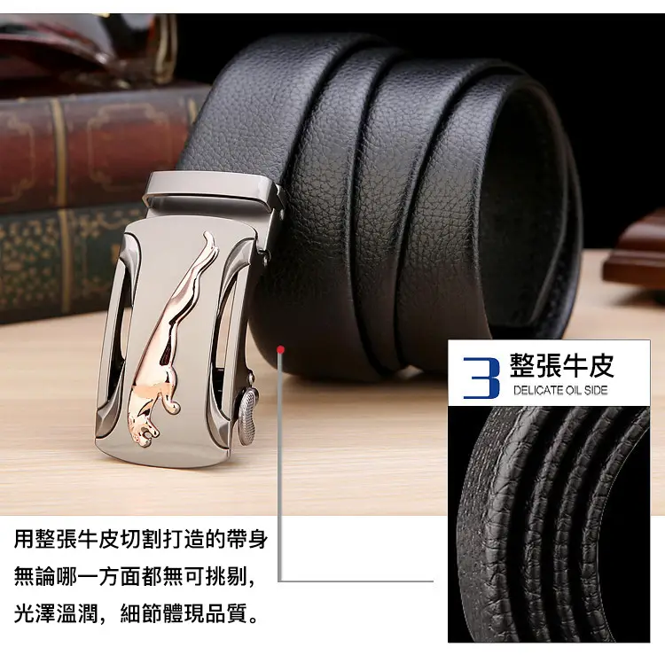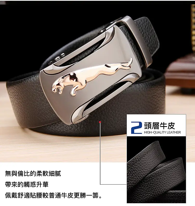 20分鐘前【官方站】男士獵豹自動扣真皮腰帶 【能用十年的真皮腰帶】 整張牛皮裁剪打造,純手工製作,耐磨耐折耐用,品質高端,彰顯男士成熟魅力