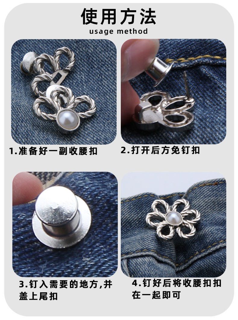 4分鐘前金屬鏤空花朵收腰扣 免縫扣 免釘褲子改小收腰神器 裙子收束腰圍鈕扣 合金縮腰扣 固定扣 調節扣 - 團購價9入組1199