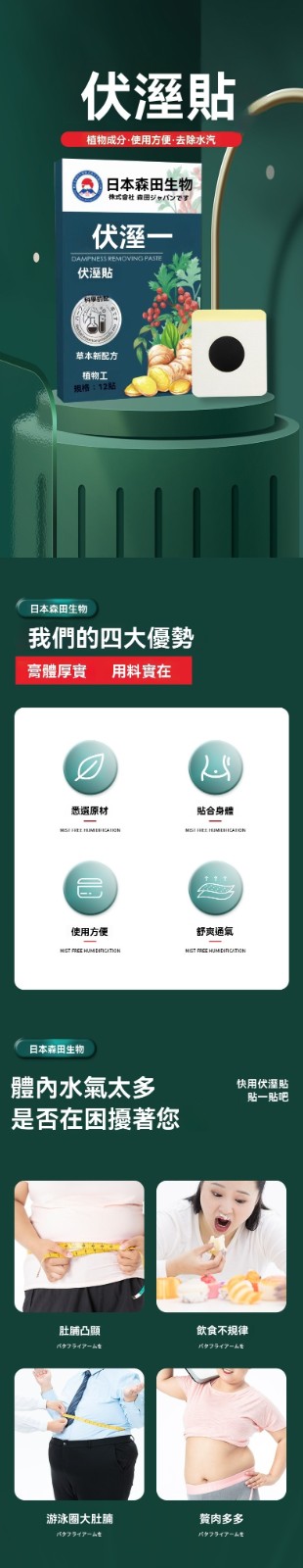 11分鐘前日本森田生物伏濕貼艾草貼肚臍貼艾灸貼溫灸貼穴點貼熱敷貼 - 🔥98%客戶選擇【排濕消肚瘦腿 八入組】 僅需NT$1298 均價162.25