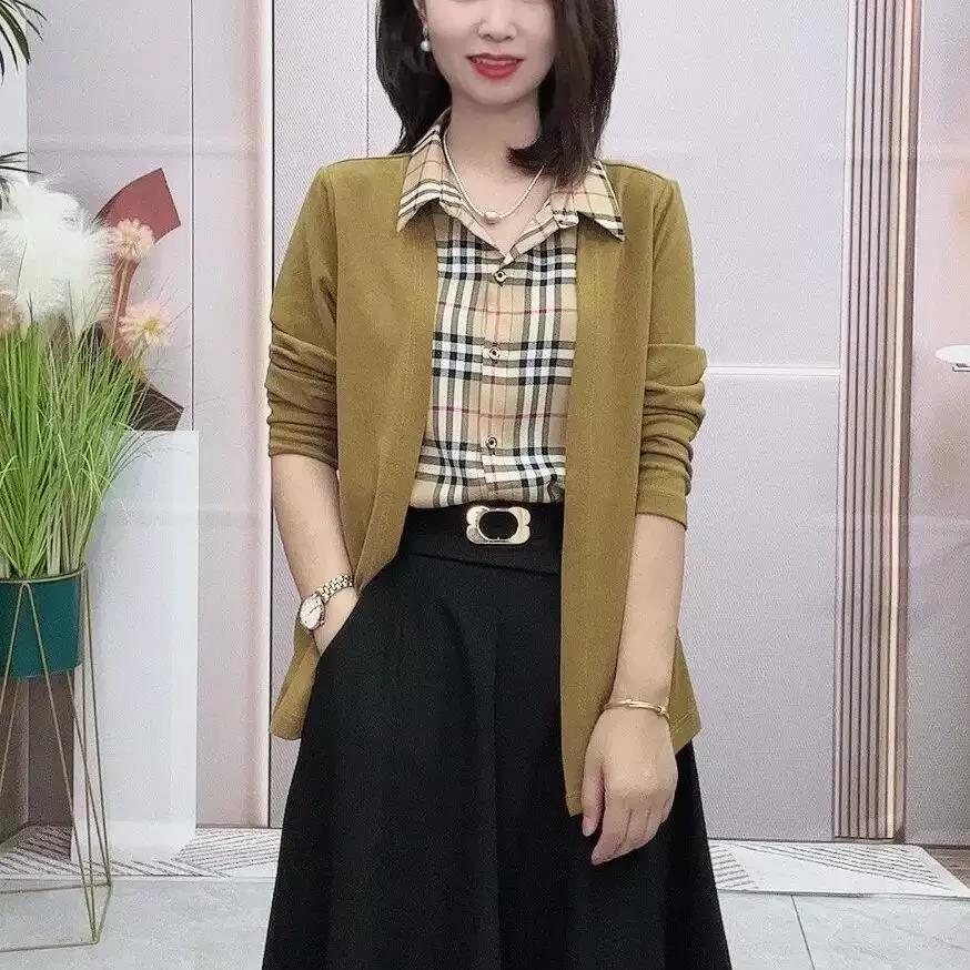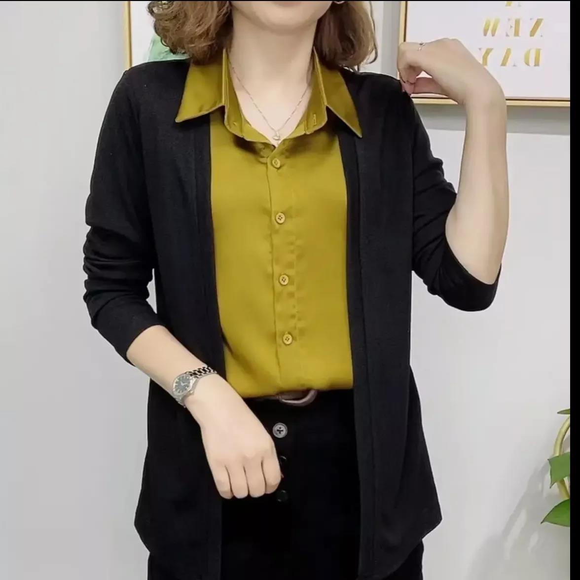 4分鐘前2022年新款秋裝拼接假兩件套開衫長袖拼接純色翻領氣質流行襯衫 - 超值套餐【四入組】NT$1099