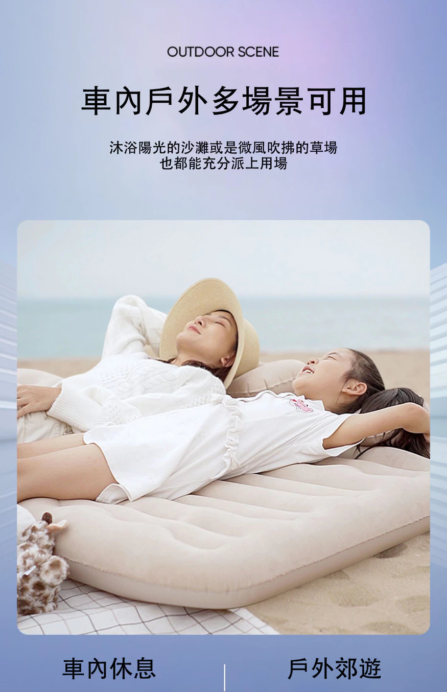 汽車充氣床墊【親膚植絨+全配套裝】 雙人充氣床墊 露營充氣床墊